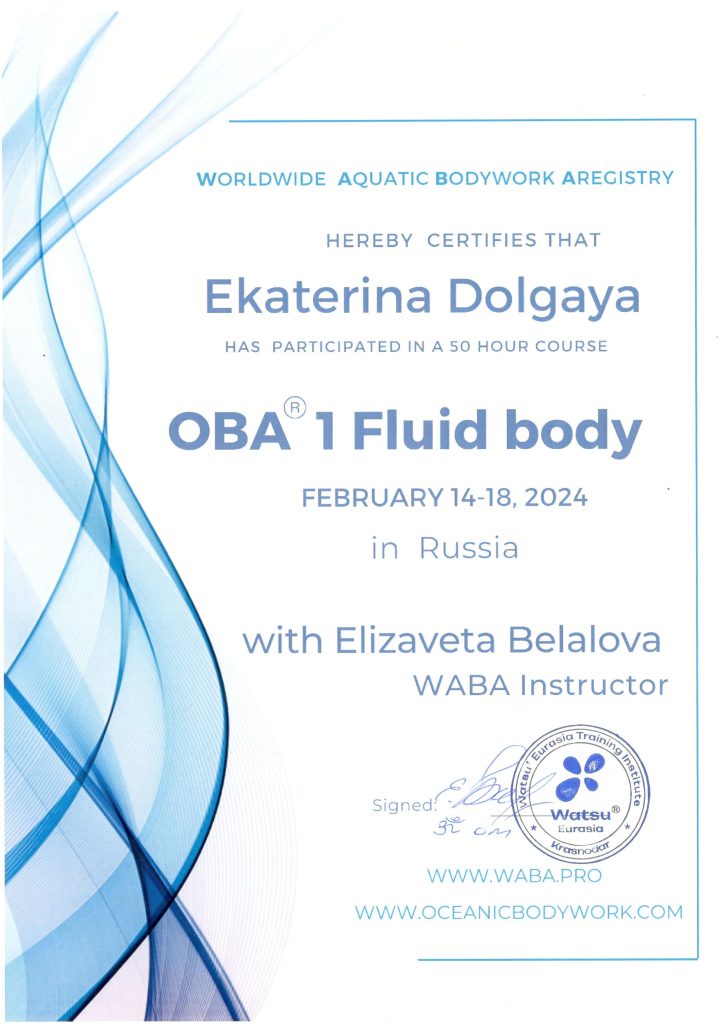 Я практик Водной телесно-ориентированной терапии ВАТСУ®.