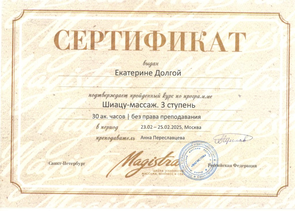 ШИАТСУ — мягкий балансирующий энергию массаж по точкам и меридианам